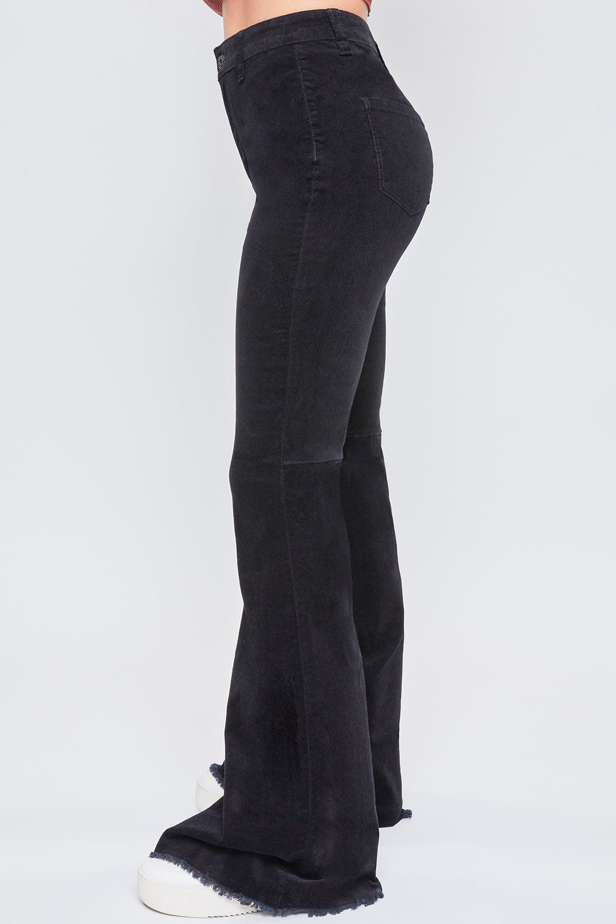 Step up your vintage style in our Women's High Rise Corduroy Flare Pant. These flared pants feature a textured corduroy feel and a bell-bottom silhouette. Designed slim in the hips and thighs, with a high-rise waist and a seam behind the knee for an extra flattering fit. Detailed with a frayed hem to spice things up! We love these styled with a band tee and sneakers for a trendy look or a sweater vest and booties.