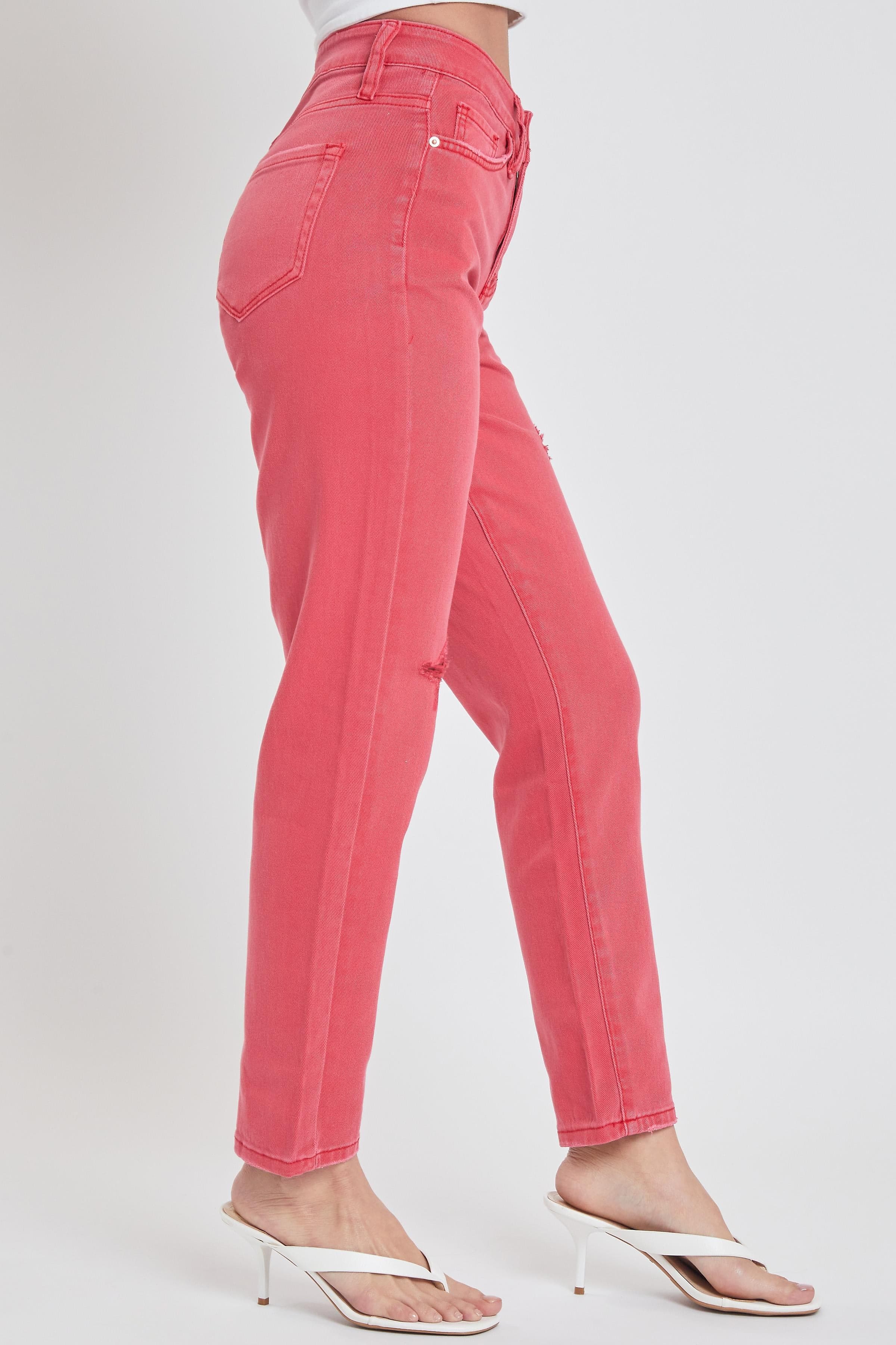 Our Dream Collection is everything you have ever wanted in a pair of jeans. Almost 100% Cotton, perfect distressed, rigid denim on the front and comfortable, butt-hugging, stretch denim on the back. Simply put, the best of both worlds. These Women's Dream High-Rise Mom Fit Jeans feature a high-rise fit, classic five-pocket construction, single-button closure with front zip, destruction details, distressed edge at hem, and belt loops.