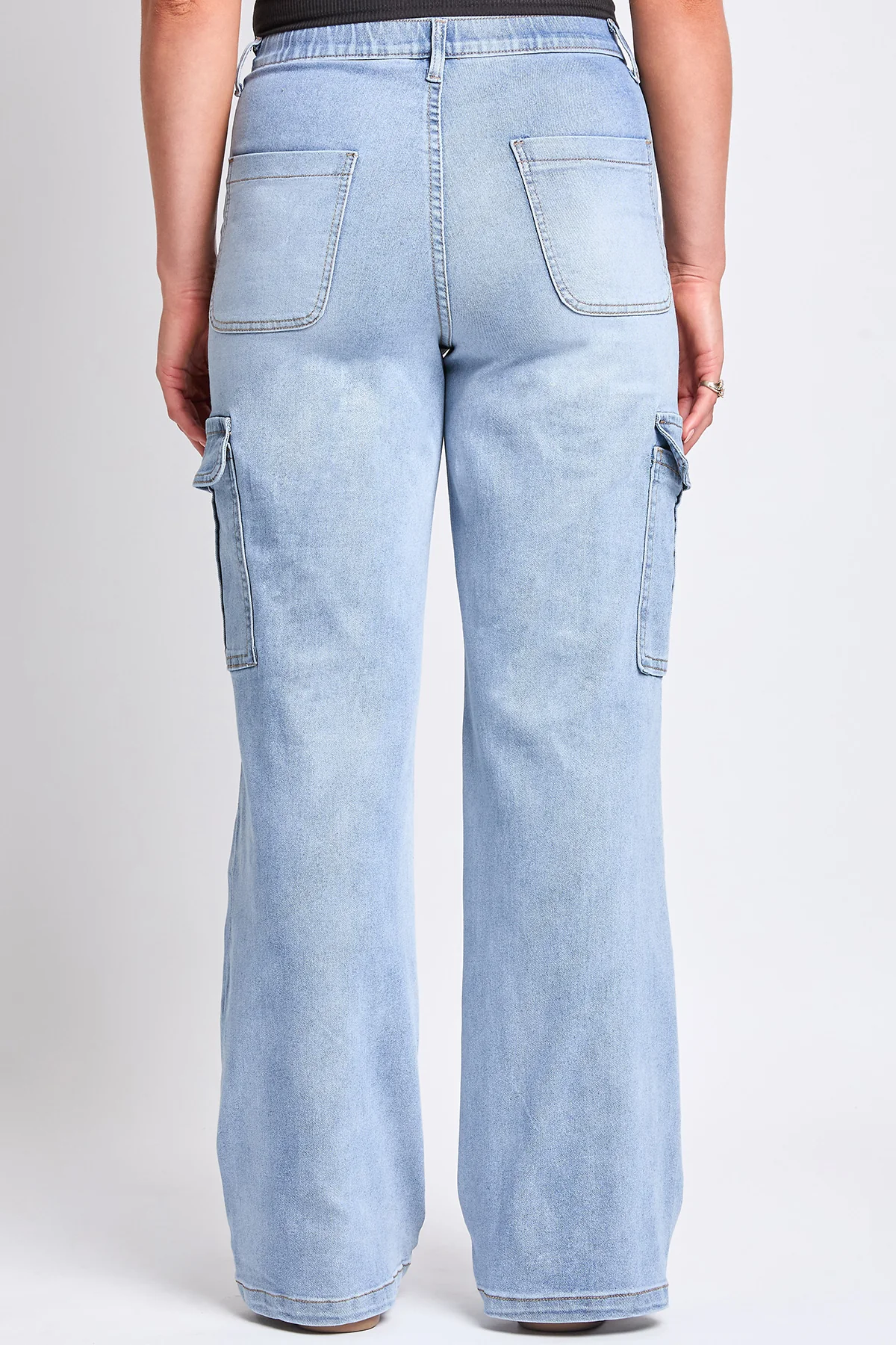 Women's High Rise Elastic Waist Cargo Straight Leg Jeans by YMI Jeans — the ultimate combination of utility and contemporary style. These jeans feature a high-rise waist and a straight-leg silhouette, offering a flattering fit with a modern edge.