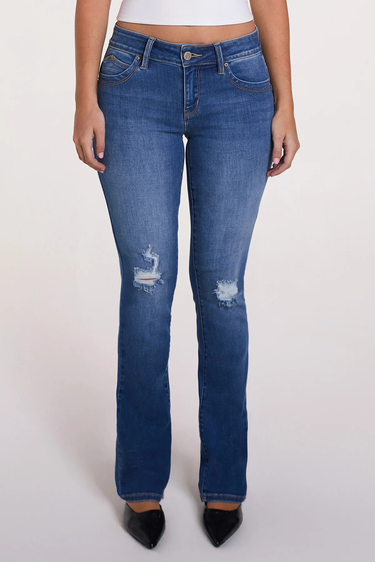 Enhance your shape and show off your curves with the Women’s Luxe Mid Rise WannaBettaButt Bootcut Jeans. These bootcut butt lifting jeans feature our signature WannaBettaButt heart-shaped stitching and uniquely made pockets for a natural butt-lift that you'll love. These mid-rise bootcut jeans sit just right on your hips, while the classic bootcut leg creates a balanced, elongating look.